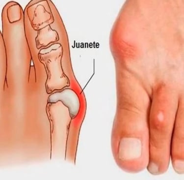 El hallux valgus, conocido popularmente como juanete, es una deformidad del pie en la que el dedo gordo se desvía hacia los demás dedos, mientras que el hueso en la base del dedo (primera cabeza metatarsiana) sobresale hacia afuera.